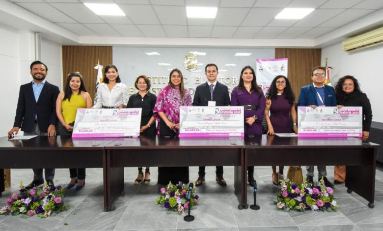 El Instituto Electoral del Estado de Querétaro (IEEQ) premió a los tres primeros lugares de la fase estatal del Concurso Nacional de Oratoria 2025 “Dr. Belisario Domínguez Palencia. Libres por la palabra libre”.