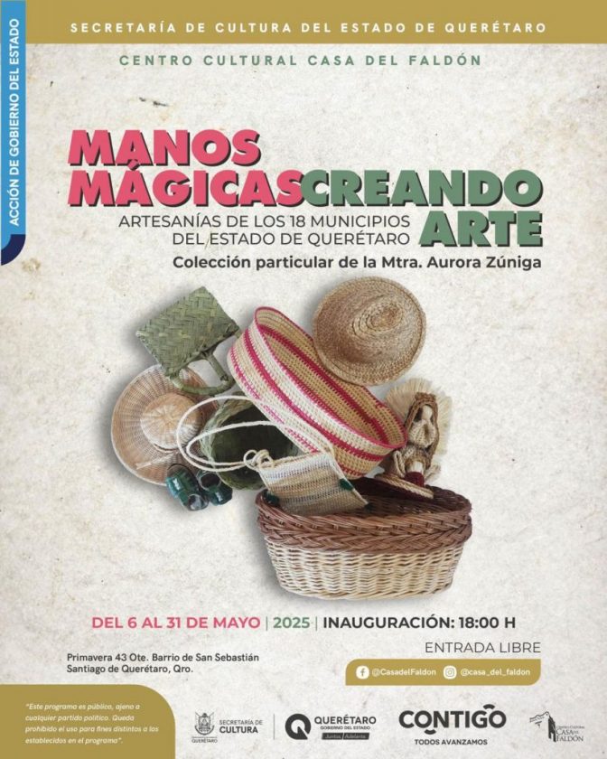 Al Centro Cultural Casa del Faldón, de la Secretaría de Cultura del estado, llega este 6 de mayo la exposición “Manos Mágicas Creando Arte”, de Aurora Zúñiga, quien con su colección personal muestra que a través de los años la artesanía ha logrado sobrevivir al modernismo, a la introducción de productos extranjeros y al plástico que ha venido desplazando a los materiales originales.