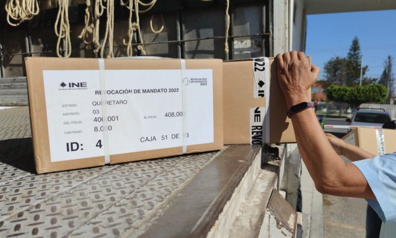 Las cinco juntas distritales del Instituto Nacional Electoral en Querétaro reciben este 22 y 23 de marzo las papeletas para el proceso de revocación de mandato del 10 de abril.