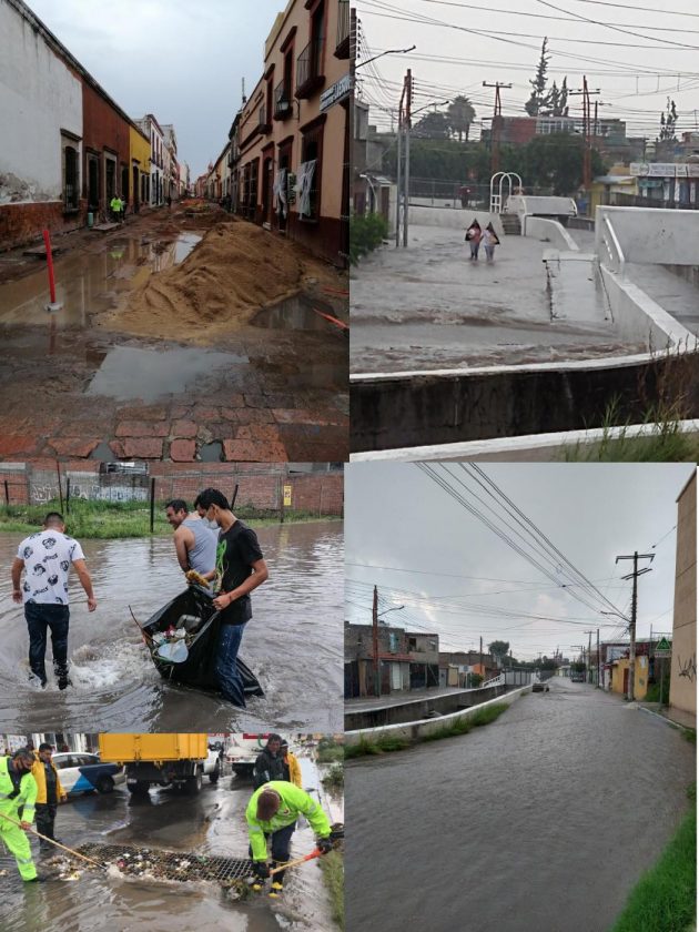 En Querétaro capital se presentaron algunas afectaciones, sobre todo con encharcamientos a nivel de banqueta en colonias como: Sauces, El Rocio, colonia Fundadores, tianguis de Satélite y calles como Pinos Suárez en el centro histórico.