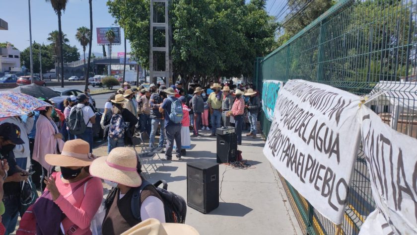 Un grupo de aproximadamente 100 personas se encuentran al exterior de las instalaciones de la CEA ubicada en lateral de 5 de febrero, manifestándose sobre los conflictos socio ambientales por el agua en comunidades, Barrios y colonias