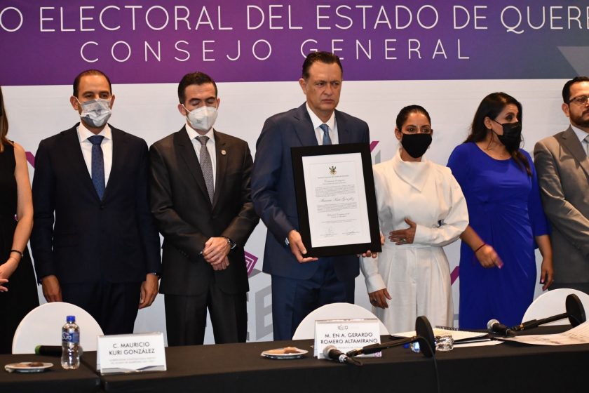 Con un total del 54 por ciento de los votos de las y los queretanos y con un margen de casi 30 puntos sobre los competidores, Mauricio Kuri González, candidato a la gubernatura de Querétaro, recibió su constancia de mayoría del IEEQ como Gobernador electo de Querétaro.