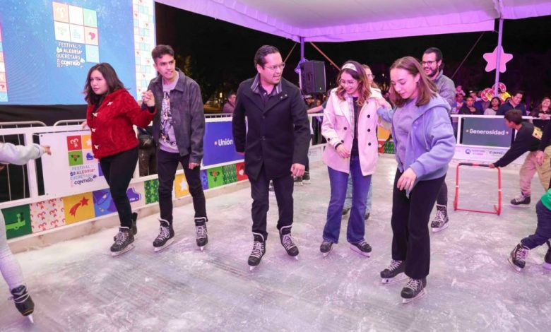 El presidente municipal de Corregidora, Josué Guerrero Trápala, encabezó la inauguración de la Pista de Hielo del Festival de la Alegría “Querétaro Contigo”, que permanecerá abierta al público del 19 de diciembre de 2025 al 4 de enero de 2026, en la Plaza Gran Cué.