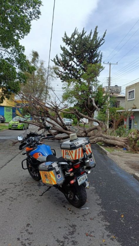 En la colonia Loma Dorada, la caída de un árbol en la calle Loma de Pinal de Amoles provocó la suspensión del servicio eléctrico en la zona. Elementos de Protección Civil y personal de la Comisión Federal de Electricidad realizaron las maniobras necesarias para restablecer el suministro.