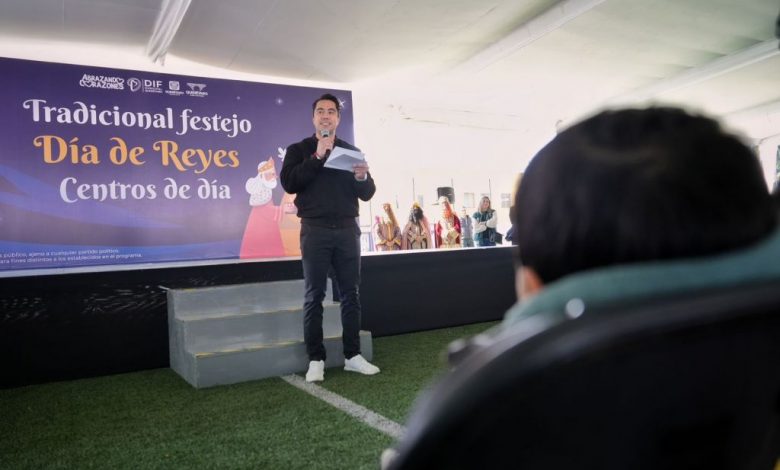 El presidente municipal de Querétaro, Felipe Fernando Macías Olvera, encabezó la celebración del Día de Reyes organizada por el Sistema Municipal DIF para 150 niñas y niños de los Centros de Día Njhöya, Jädi y Meni.