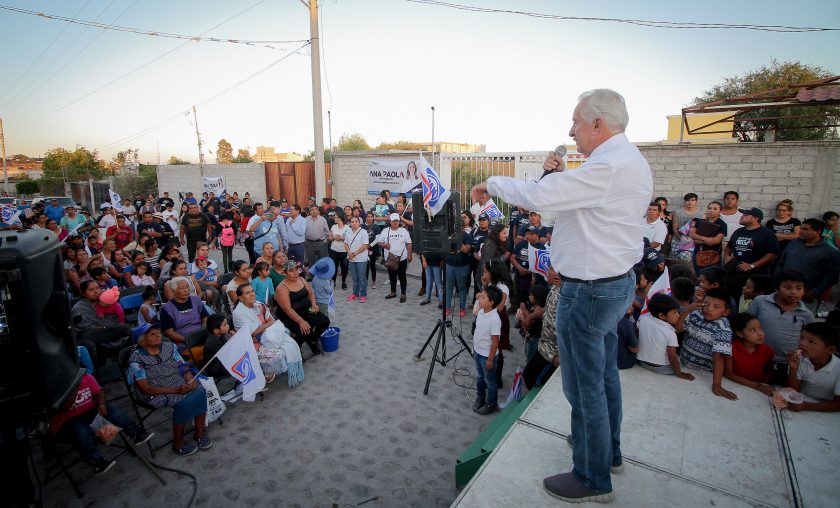 Durante el evento se hizo acompañar por la candidata a la diputación federal al quinto distrito Ana Paola López Birlain.
