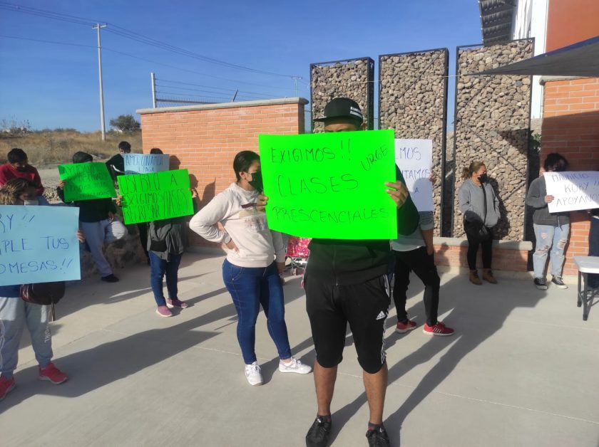 Padres de familia de la escuela secundaria Esperanza Cabrera de la colonia Puertas de San Miguel, exigieron a las autoridades solucionar el problema de falta de agua y drenaje en las instalaciones del plantel para que sus hijos puedan regresar a clases presenciales.