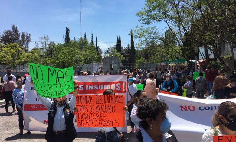 Personal del ISSSTE en Querétaro se manifestó esta mañana en el Hospital General ubicado sobre Av Tecnológico, pidiendo al gobierno federal, la provisión de material así como la contratación de más personal para hacer frente a la pandemia.