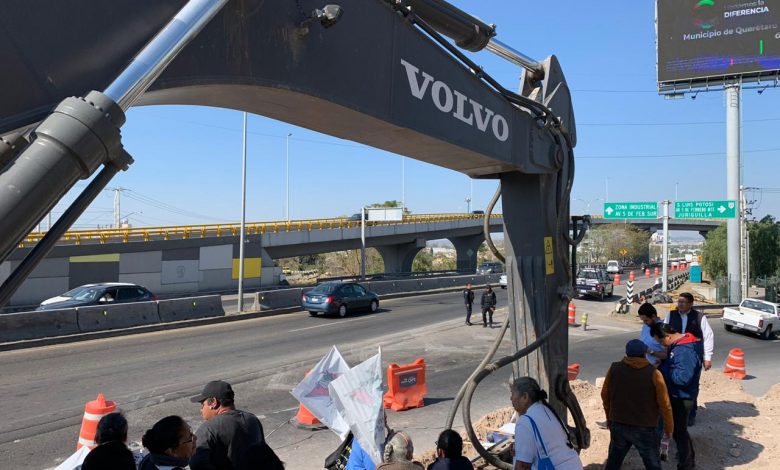 Un grupo de ejidatarios del Ejido San Pablo se manifestaron en la intersección de Av. 5 de Febrero y Bernardo Quintana para demandar atención de las autoridades que ejecutan una nueva obra en la zona.