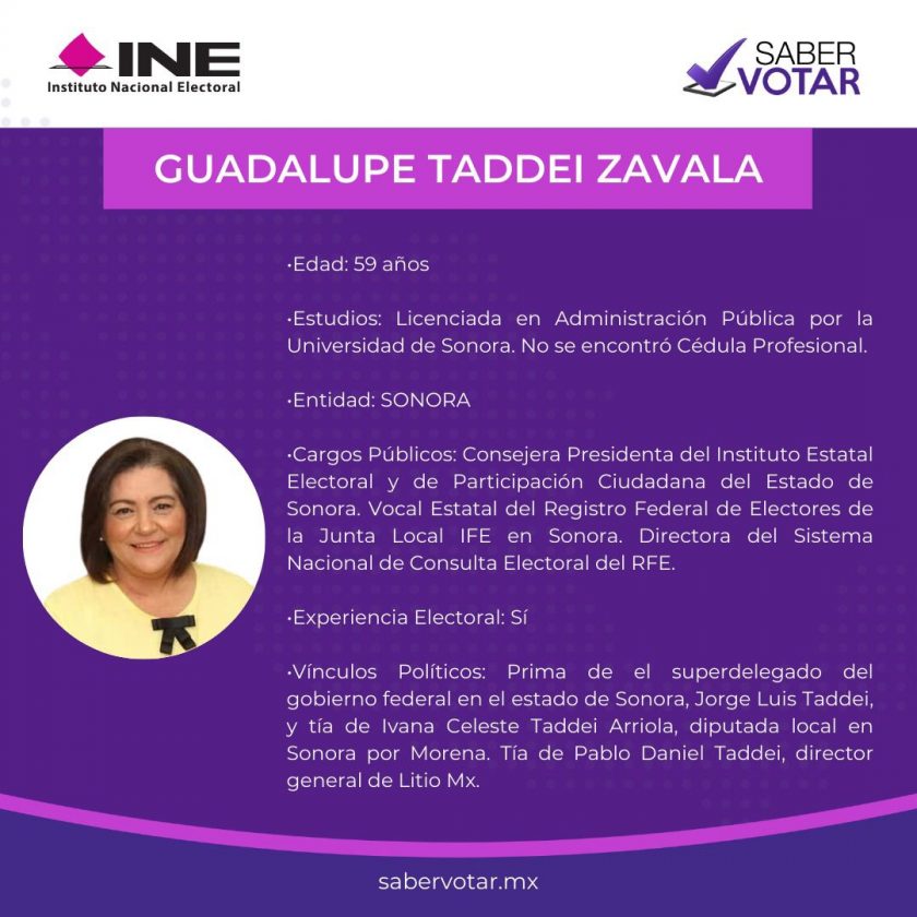 La ueva presidenta del INE es prima del superdelegado del gobierno federal en Sonora, Jorge Luis Taddei.