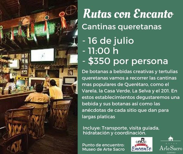 “Vamos a recorrer las cantinas más populares de Querétaro, como el Varela, la Casa Verde, la Selva y el 2021. En estos establecimientos degustaremos una bebida y sus botanas y se escucharán anécdotas de cada sitio”, anunció el vicario.