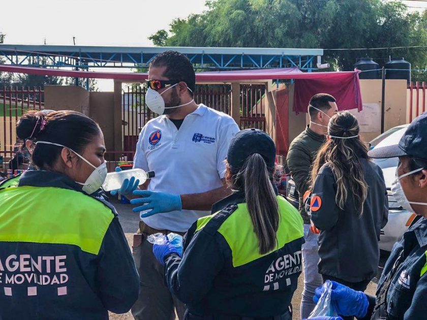 De igual forma distribuyen cubrebocas y gel antibacterial como medida preventiva en estos puntos.