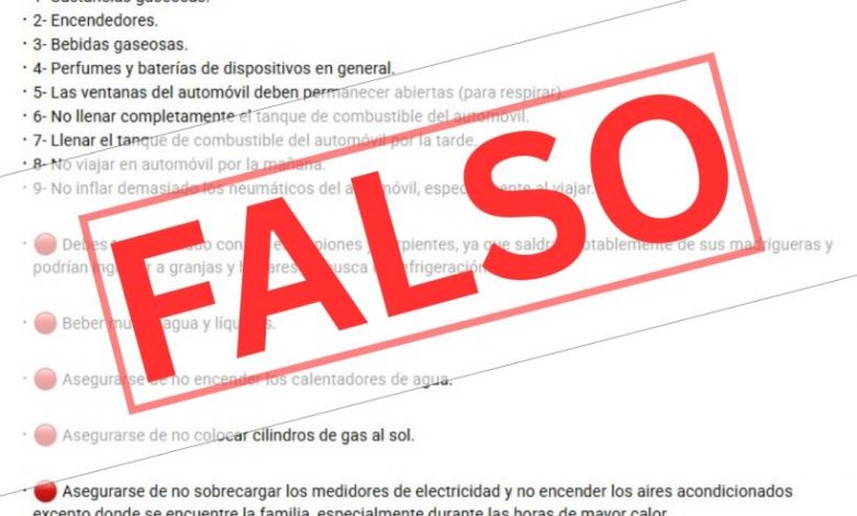 También mezcla recomendaciones generales con indicaciones incorrectas, como evitar llenar completamente el tanque de combustible o no viajar por la mañana, las cuales no forman parte de protocolos oficiales.
