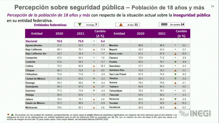En este estudio, once entidades incrementaron el indicador de percepción de seguridad y 7 tuvieron una disminución, el resto –donde se encuentra Querétaro- no reportaron una variante significativa.