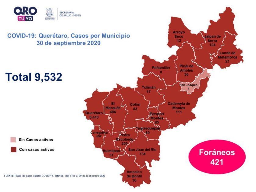 En Querétaro, un hombre de 47 años y una mujer de 48, sin comorbilidad, una mujer de 61 y un hombre de 74 con diabetes e hipertensión arterial, un hombre de 65 con hipertensión arterial, uno de 70 con hipertensión arterial y tabaquismo, y un hombre de 85 con diabetes y tabaquismo, que se encontraban hospitalizados, fallecieron a causa de la enfermedad COVID-19.