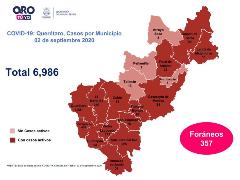 En la entidad se tiene un registro acumulado de seis mil 986 casos de COVID-19; 45% son mujeres y 55% son hombres.