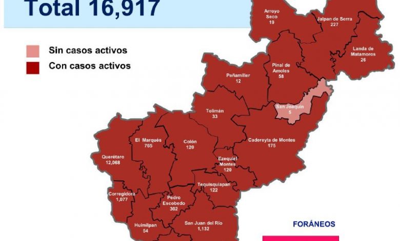 Querétaro, con 16,917 casos de COVID-19