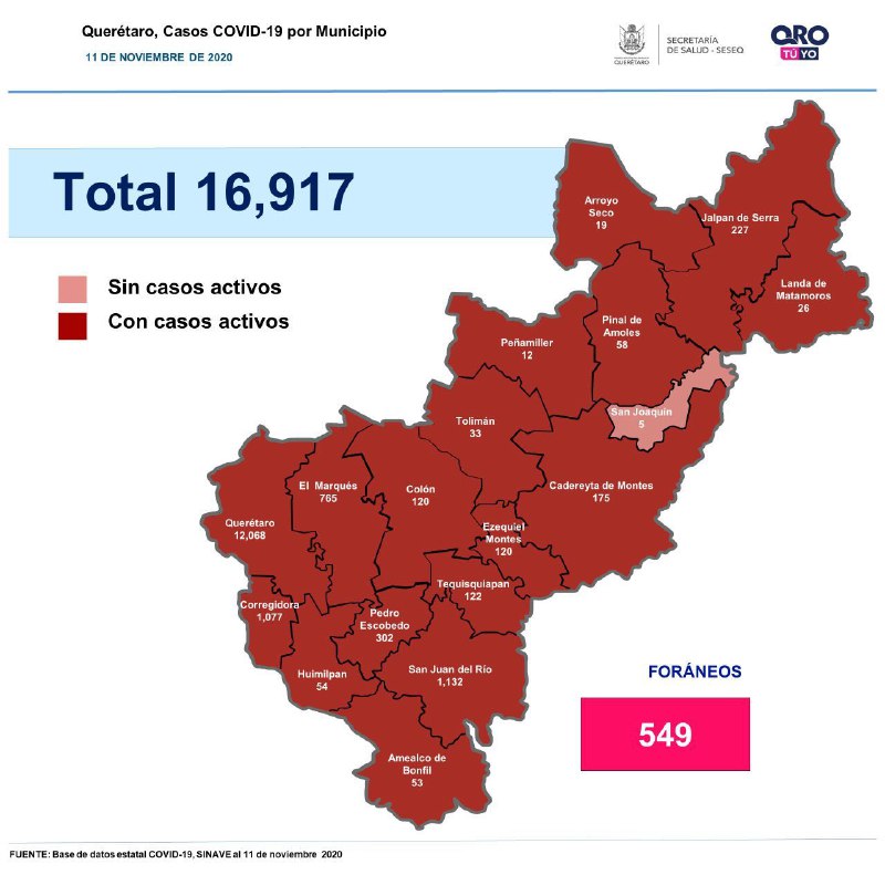 En el estado de Querétaro se suman 209 casos de COVID-19; se trata de 104 mujeres y 105 hombres, entre ellos un niño de siete años.