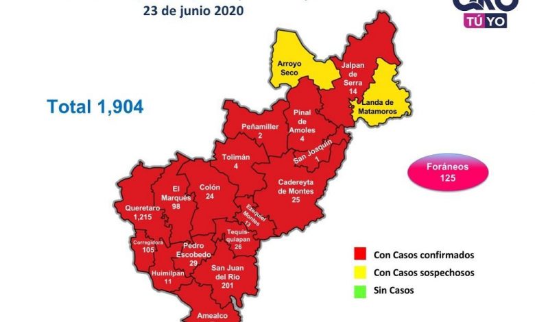 Querétaro con mil 904 casos de enfermedad COVID-19