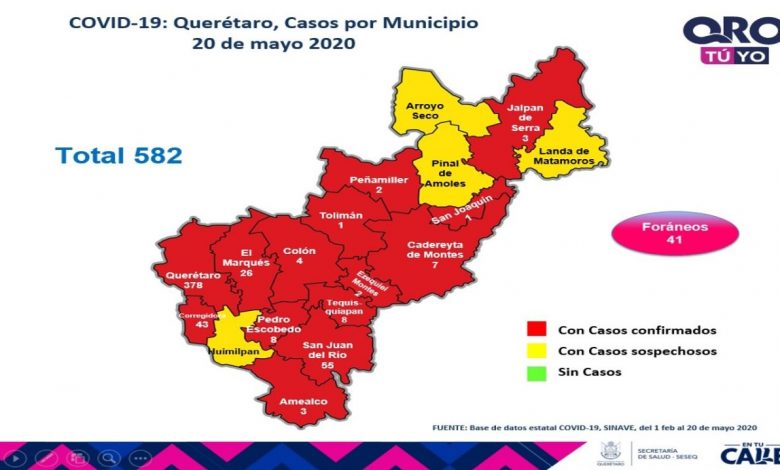 Querétaro con 582 casos de enfermedad COVID
