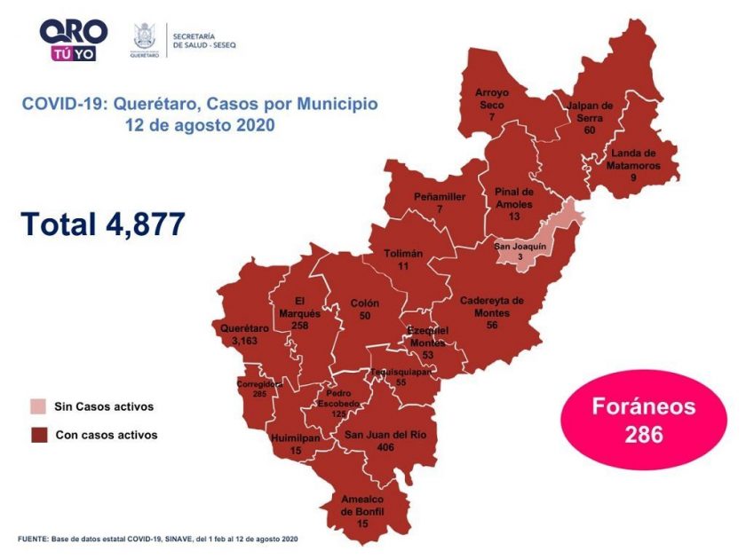 En la entidad se tiene un registro acumulado de cuatro mil 877 casos de COVID-19; 44% son mujeres y 56% son hombres.