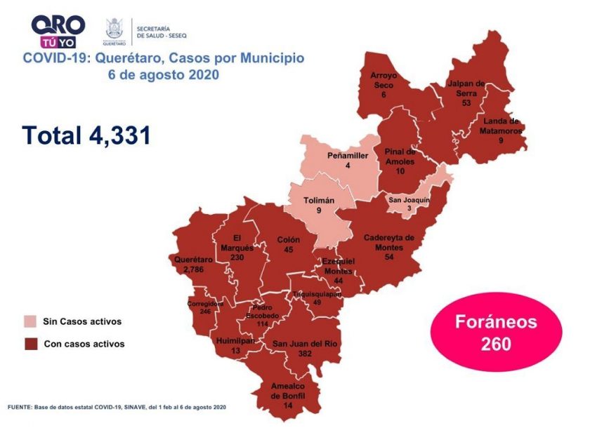 En la entidad se tiene un registro acumulado de cuatro mil 331 casos de COVID-19; 43% son mujeres y 57% son hombres.