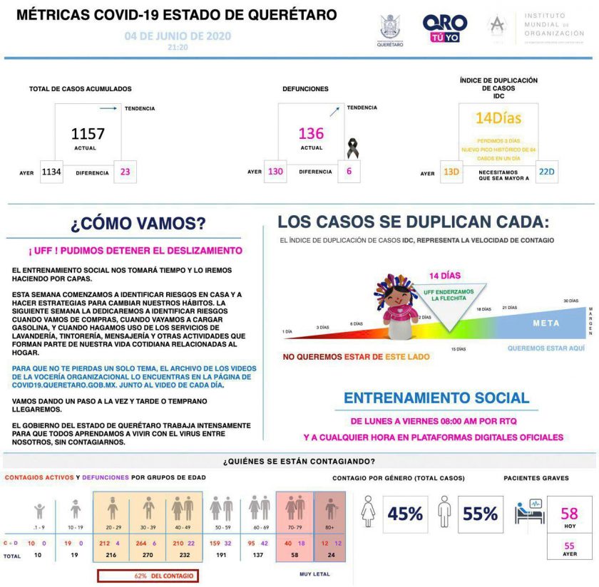 Para atender el tema de COVID-19 se habilitó el call center 442 1015205. A la fecha se han contestado 17 mil 610 llamadas con un promedio de duración de seis minutos 58 segundos.