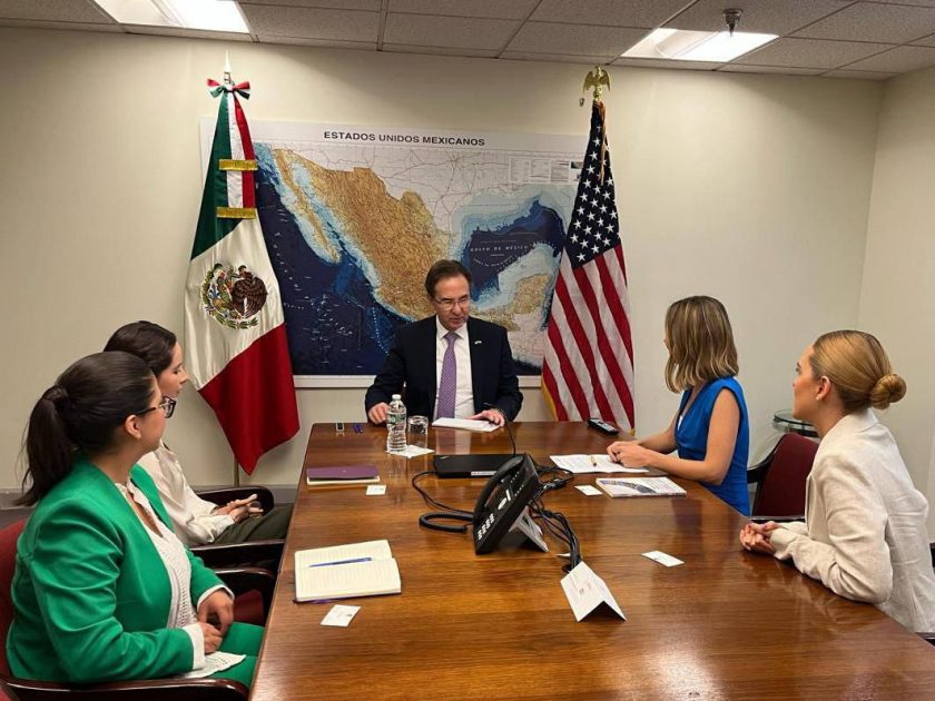 La representante del Poder Ejecutivo del Estado de Querétaro en la Ciudad de México, Paloma Palacios González, y la secretaria de la Juventud, Virginia Hernández Vázquez, sostuvieron una reunión con el embajador de México en Estados Unidos, Esteban Moctezuma Barragán, para reforzar la cooperación binacional.