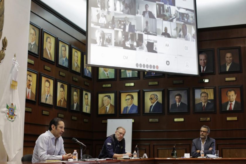 El gobernador de Querétaro, Francisco Domínguez Servién, participó en una videoconferencia convocada por la secretaria de Gobernación, Olga Sánchez Cordero, para dar seguimiento a la estrategia de retorno ordenado y gradual a la nueva normalidad en las entidades en donde convergen las industrias automotriz y aeroespacial.
