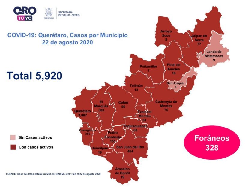 En la entidad se tiene un registro acumulado de cinco mil 920 casos de COVID-19; 44% son mujeres y 56% son hombres.
