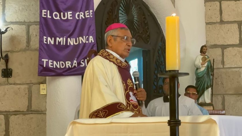El obispo de Querétaro, Fidencio López Plaza, celebró la misa de la Cena del Señor en el Centro Penitenciario de San José el Alto, como parte de las actividades de Semana Santa.