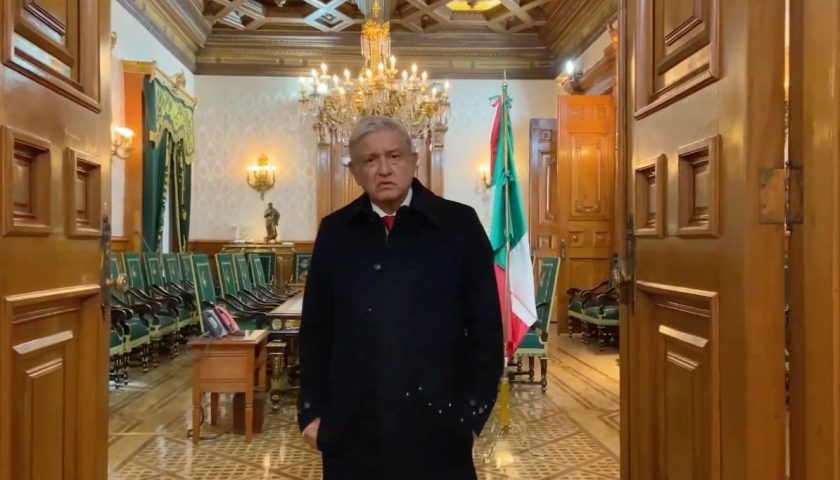 Para acallar rumores de su estado de salud, el presidente de México, aún contagiado de Covid-19 pero sin cubrebocas, apareció en un video recorriendo pasillos de Palacio Nacional.