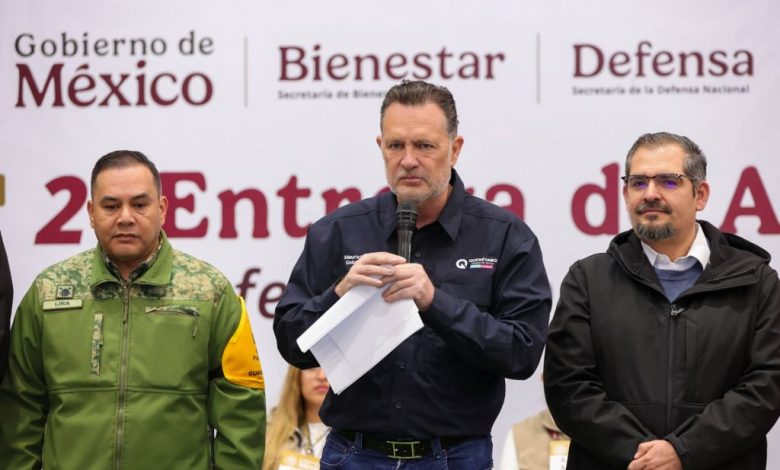 Desde San Joaquín, donde encabezó la segunda entrega de apoyos federales, Kuri agradeció a la Federación por su intervención en la apertura de caminos y distribución de insumos: