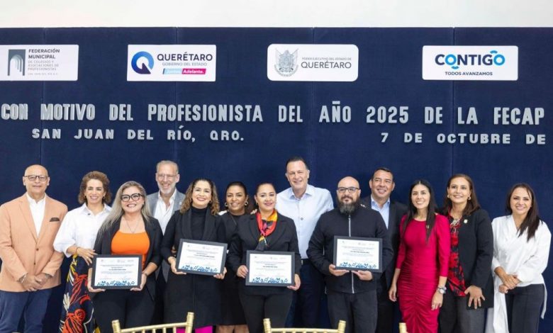 El gobernador Mauricio Kuri González encabezó la celebración del Profesionista del Año 2025 en San Juan del Río. Reconoció a los integrantes de la Federación de Colegios y Asociaciones de Profesionistas de Querétaro (FECAP).