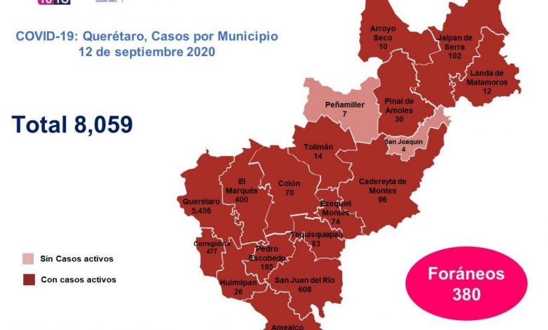 En Querétaro dos hombres de 23 y 45 años con hipertensión arterial, una mujer de 26 con enfermedad pulmonar obstructiva crónica, tres hombres de 39, 53 y 106 y una mujer de 74 sin comorbilidad, una mujer de 41 con hipertensión arterial y obesidad, un hombre de 45 con hipertensión arterial e insuficiencia renal, un hombre de 52 con obesidad, uno más de 59 con diabetes e hipertensión arterial, una mujer de 63 con diabetes y obesidad, un hombre de 64 con diabetes, insuficiencia renal y tabaquismo, una mujer de 71 con cardiopatía y obesidad y un hombre de 74 años con hipertensión arterial y cardiopatía, que se encontraban hospitalizados, fallecieron a causa de la enfermedad COVID-19.