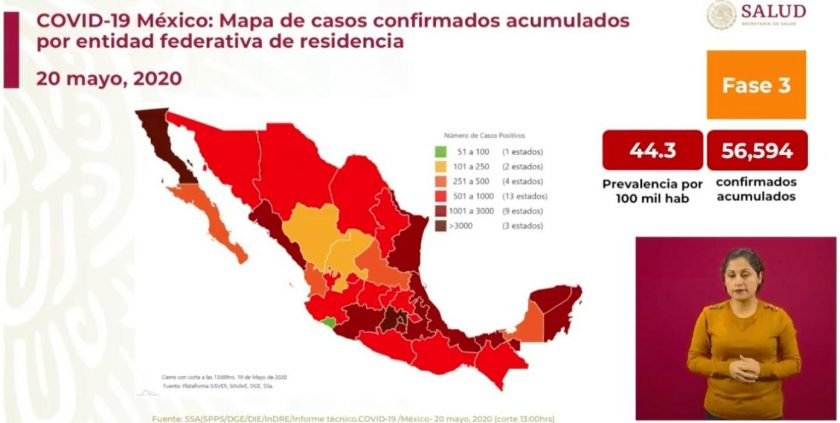 Con respecto al reporte de ayer hubo también 2,248 casos nuevos confirmados de la enfermedad, con lo que los casos acumulados llegaron a 56,594 personas.