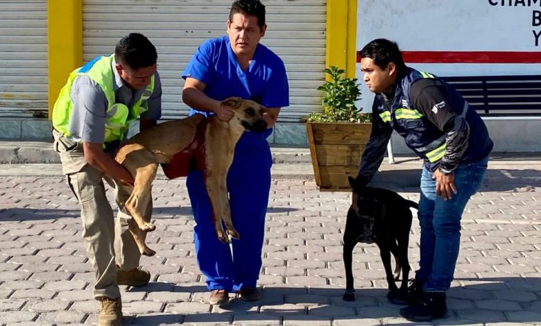 Personal de la Unidad de Rescate Animal, se trasladó a la plaza principal de la comunidad de San Vicente Ferrer, donde se encontraba el ejemplar canino, que presentaba una lesión por arma blanca, a la altura del tórax.