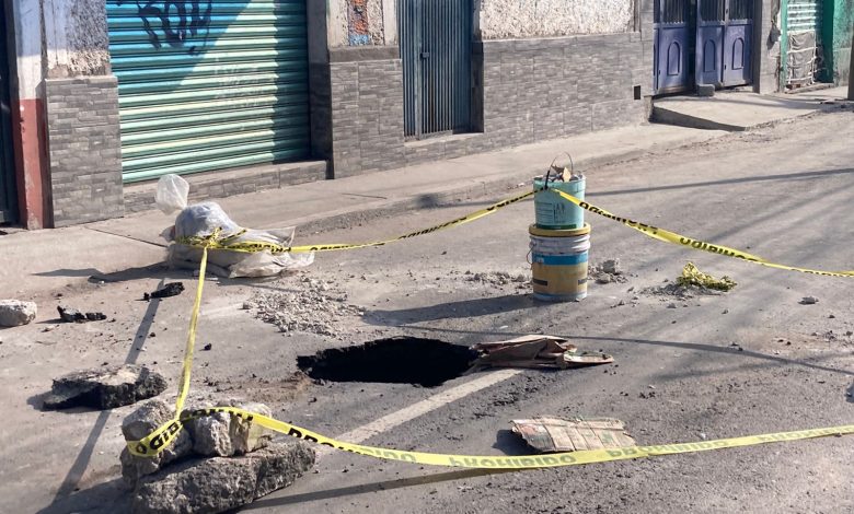 Esta mañana se recibió el reporte de un socavón sobre la prolongación de la calle 18 de Marzo en la colonia Felipe Carrillo Puerto.