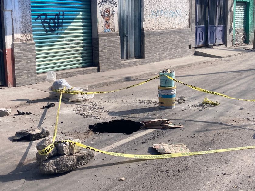 Esta mañana se recibió el reporte de un socavón sobre la prolongación de la calle 18 de Marzo en la colonia Felipe Carrillo Puerto.