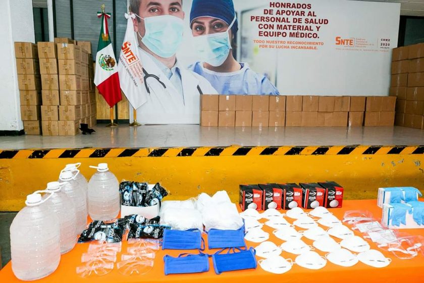 En ese sentido, el dirigente sindical Maurino Morales García, entregó 8 mil 500 guantes de nitrilo, 220 mascarillas, mil 300 cubrebocas, 210 litros de gel antibacterial, 130 monogogles, 210 mascaras faciales, mil 700 cubrebocas Cofepris, 40 cubrebocas FDA, 210 batas quirúrgicas, 700 cubrebocas azules y 250 cubrebocas lavables.