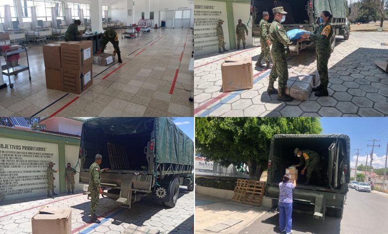 La Secretaría de la Defensa Nacional, a través de la Comandancia de la 17/a. Zona Militar, continúa con acciones realizadas para mitigar los efectos de la pandemia por el Covid-19, esta fecha 2 vehículos militares de carga, trasladaron a esta entidad federativa diversos insumos médicos para ser entregados en los Hospitales, INSABI No. 29 “Santa Cruz” y Unidad Operativa de Hospitalización del 4/o. R.B.R., ubicados en el Centro de Querétaro e interior de la 17/a. Zona Militar.