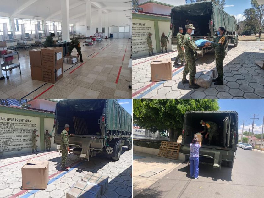 La Secretaría de la Defensa Nacional, a través de la Comandancia de la 17/a. Zona Militar, continúa con acciones realizadas para mitigar los efectos de la pandemia por el Covid-19, esta fecha 2 vehículos militares de carga, trasladaron a esta entidad federativa diversos insumos médicos para ser entregados en los Hospitales, INSABI No. 29 “Santa Cruz” y Unidad Operativa de Hospitalización del 4/o. R.B.R., ubicados en el Centro de Querétaro e interior de la 17/a. Zona Militar.