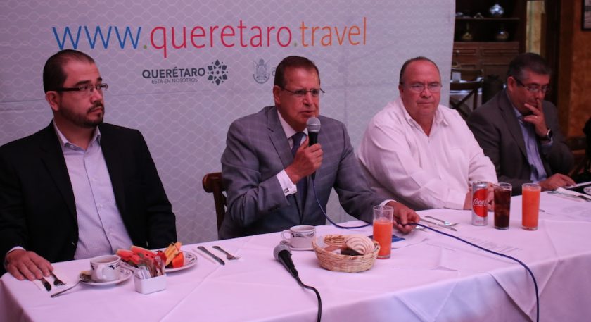 Encabezando la rueda de prensa, el secretario de turismo en la entidad, Hugo Burgos García, recordó que la iniciativa “Embajadores de Querétaro” fue presentada a inicios del presente año, con la intención de invitar a los empresarios queretanos a sumarse a través de diversas estrategias y alianzas, a la promoción turística de Querétaro. Con ello, se busca hacer frente a los diversos recortes presupuestales al sector turístico de todo el país.