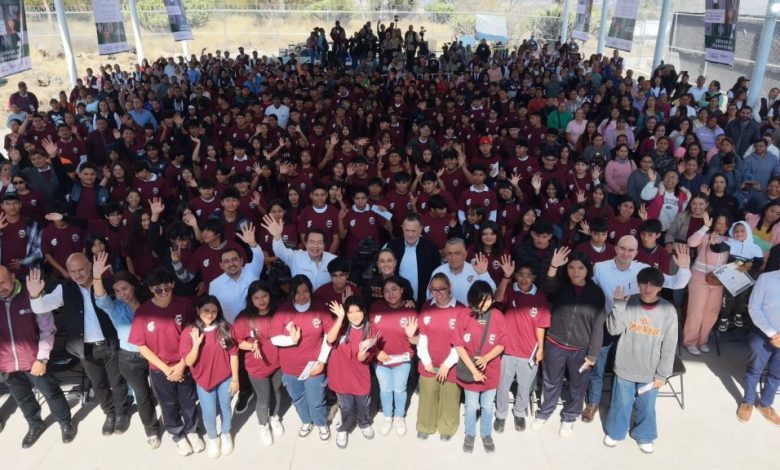 La presidenta de México, Claudia Sheinbaum Pardo, encabezó la entrega de tarjetas de la Beca Universal “Benito Juárez” y supervisó los avances del nuevo Centro de Bachillerato Tecnológico Industrial y de Servicios (CBTIS) No. 304, que registra un 90% de avance y será inaugurado en febrero de 2026.