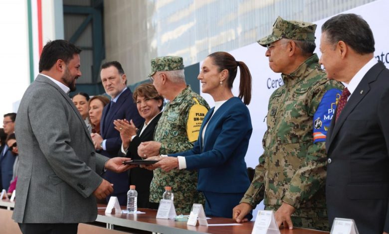La presidenta de México, Claudia Sheinbaum Pardo, encabezó en la Base Aérea de Santa Lucía, Estado de México, la ceremonia de reconocimiento al personal que participó en la aplicación de los planes DN-III-E y Marina, así como en las labores de la Comisión Federal de Electricidad (CFE), tras las intensas lluvias que afectaron a los estados de Querétaro, Veracruz, Puebla, San Luis Potosí e Hidalgo.