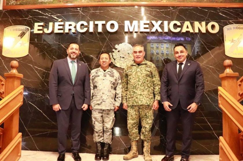 El general de Brigada Diplomado del Estado Mayor, Vinicio Perea Alcaraz, junto al coordinador estatal de la Guardia Nacional en Querétaro, Comisario Jefe Filiberto O r o p e z a Fabián, abordaron las acciones que se llevarán a cabo mediante un trabajo interinstitucional con el fin de preservar la tranquilidad y el o r d e n en t o r n o a este evento nacional.