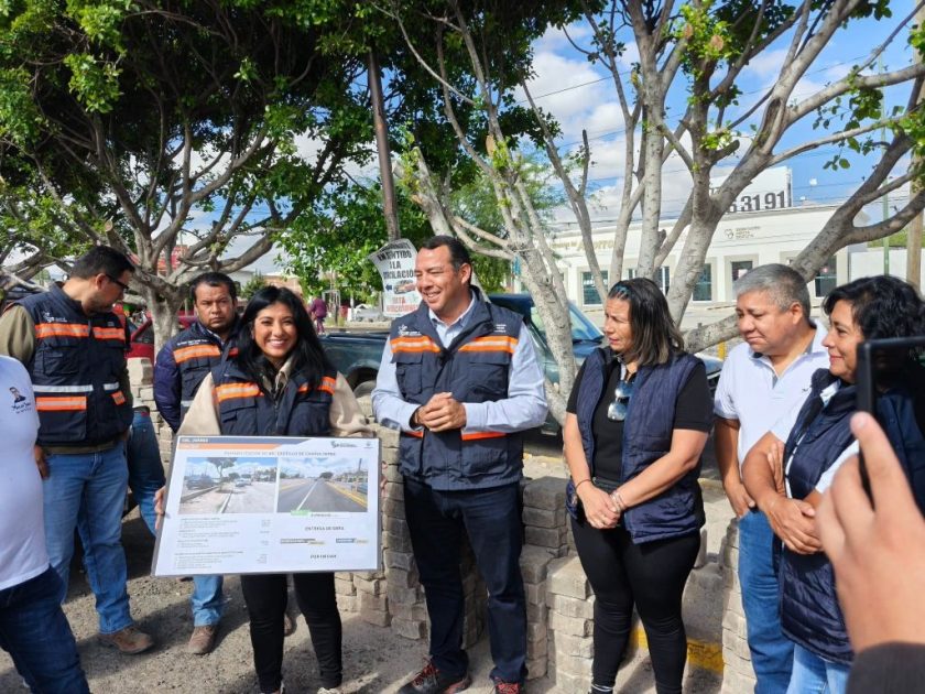 El presidente municipal de San Juan del Río, Roberto Cabrera Valencia, realizó un recorrido de supervisión sobre los trabajos que lleva a cabo la Dirección de Obras Públicas y Desarrollo Urbano, en el camellón central ubicado frente al Mercado Juárez y el Castillo de Chapultepec.