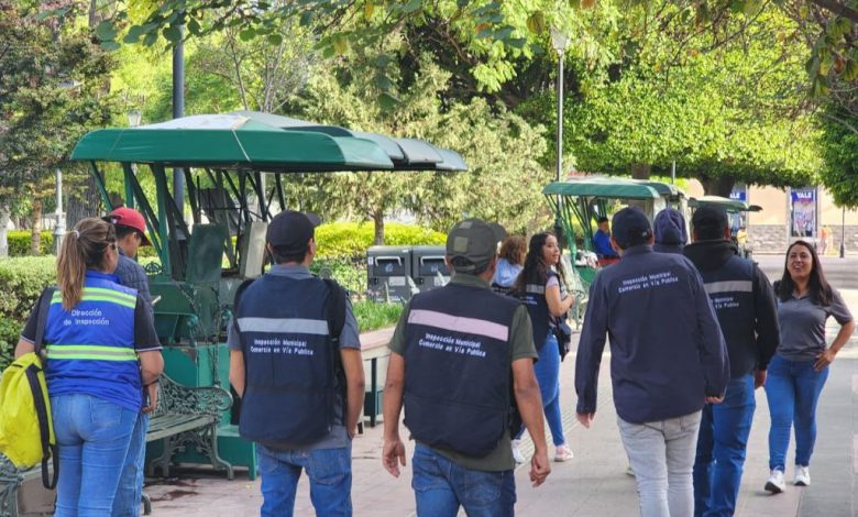 Desde muy temprano este sábado, los Inpsectores realizan recorridos por las calles y plazas del primer cuadro de la ciudad para procurar a los reglamentos de la actividad comercial.