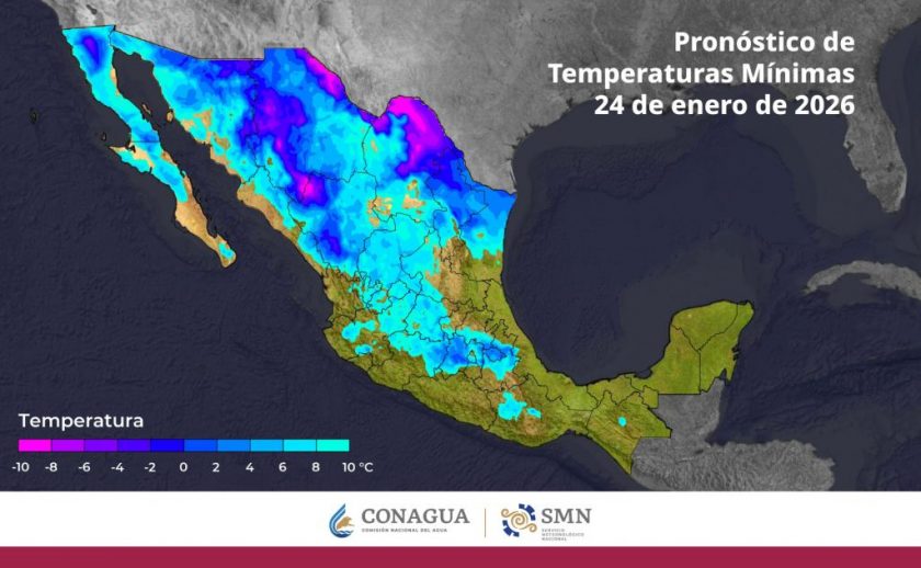 En cuanto a temperaturas mínimas, se pronostican valores de hasta -10 °C en zonas serranas de Chihuahua y Durango, mientras que entidades del centro del país, como Querétaro, podrían registrar temperaturas de entre 0 y 5 °C en zonas altas.