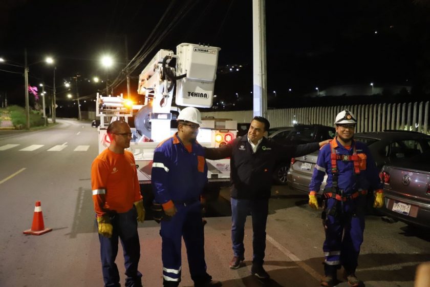 El Presidente Municipal de Querétaro, Luis Nava, acompañó en su jornada de mantenimiento a una cuadrilla de trabajadores del Departamento de Alumbrado Público de la Secretaría de Servicios Públicos, que a diario procuran el buen funcionamiento del alumbrado público como uno de los factores clave para que las familias queretanas se sientan seguras cuando transitan por sus calles, plazas y vialidades.